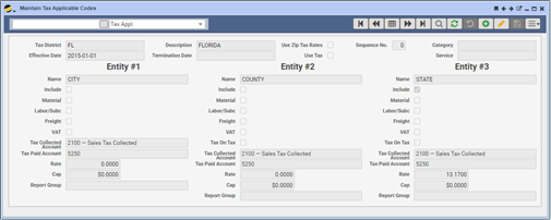 Each tax code is marked as either Sales or Use tax. And each can tax up to three levels, which are typically defined as City, County and State. These labels can vary at the individual code level depending on your taxation requirements.