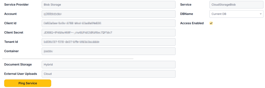 - Note: The Cloud icon column will still display when using blob storage to denote the document is stored in the Cloud but will have no effect when using blob storage