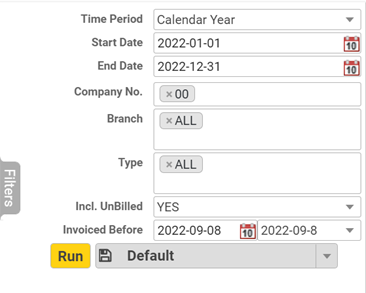 - Incl. UnBilled: Options are Yes and No. Determines whether unbilled service contracts should be included in the report.